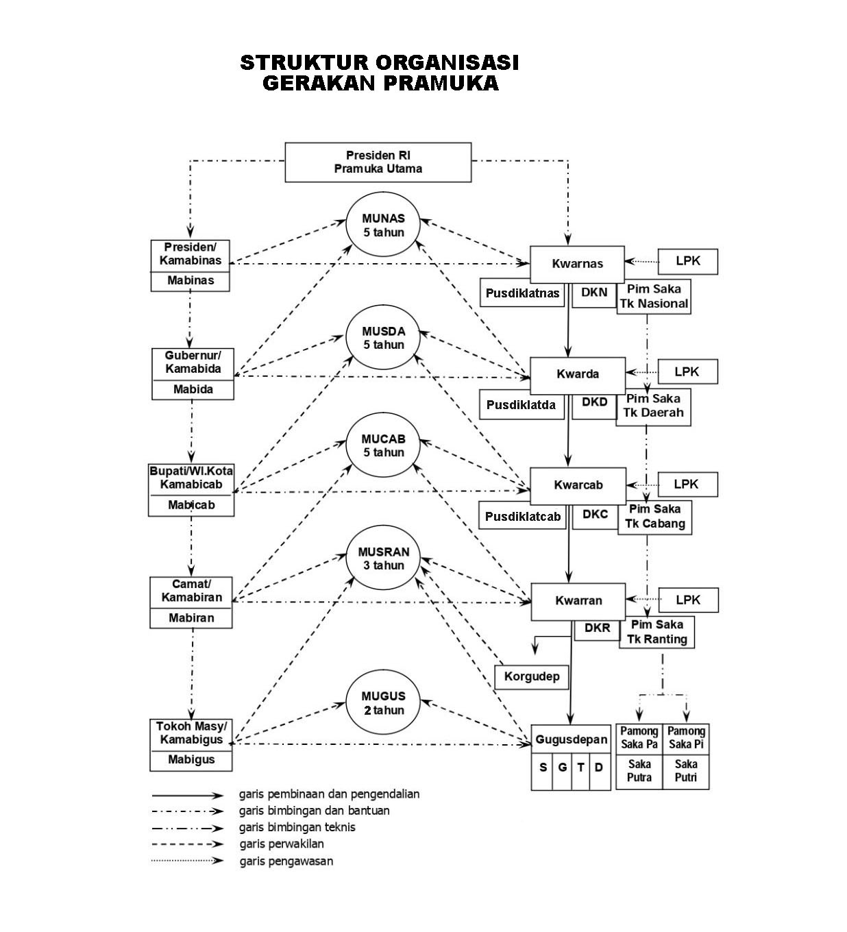 Oleh karena itu, pada bagan yang memuat nama Badan/ Lembaga maupun Musyawarah pada Satuan Gudep, pada bagan struktur organisasi dengan sendirinya menyesuaikan dengan peraturan yang lebih tinggi (AD dan ART Gerakan Pramuka).